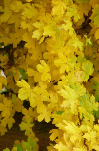 Vous cherchez un arbre de caractère? Cet érable espagnol ou érable champêtre (Acer Campestere), à la croissance lente, présente une écorce ainsi que des rameaux liégeux très décoratifs, ce qui en fait un excellent arbre de jardin. Il y a des centaines d'années, cet arbre était largement utilisé pour faire des haies, le long des berges et pour séparer les champs les uns des autres. Aujourd'hui, l'arbre est très souvent planté. Les belles feuilles vert foncé prennent une agréable couleur jaune beurre en automne. Les brindilles sont brunes et velues.
