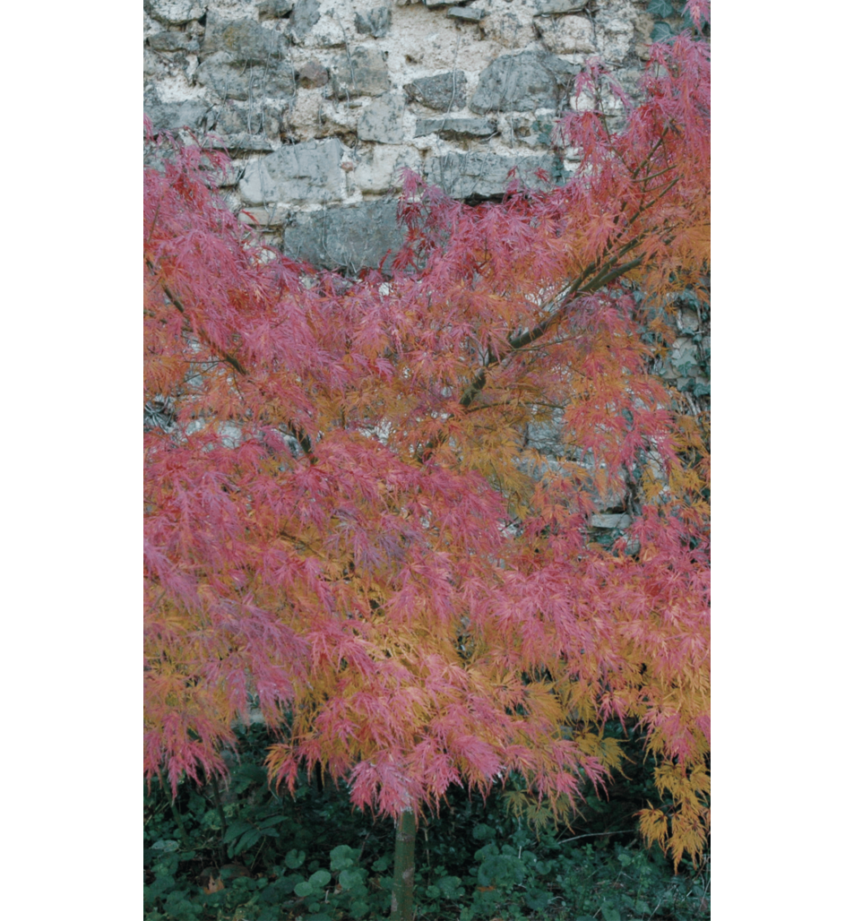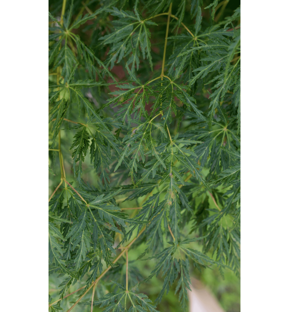 L'Acer Palmatum 'Seiryu' est un érable japonais unique en son genre, apprécié pour son feuillage finement découpé et son port dressé. Contrairement aux autres érables dissectum à port retombant, 'Seiryu' se distingue par sa silhouette verticale et élégante. Au printemps, son feuillage vert tendre illumine le jardin avant de prendre une teinte vert profond en été. À l’automne, il se transforme en une explosion de couleurs jaune, orange et rouge vif, offrant un spectacle flamboyant.