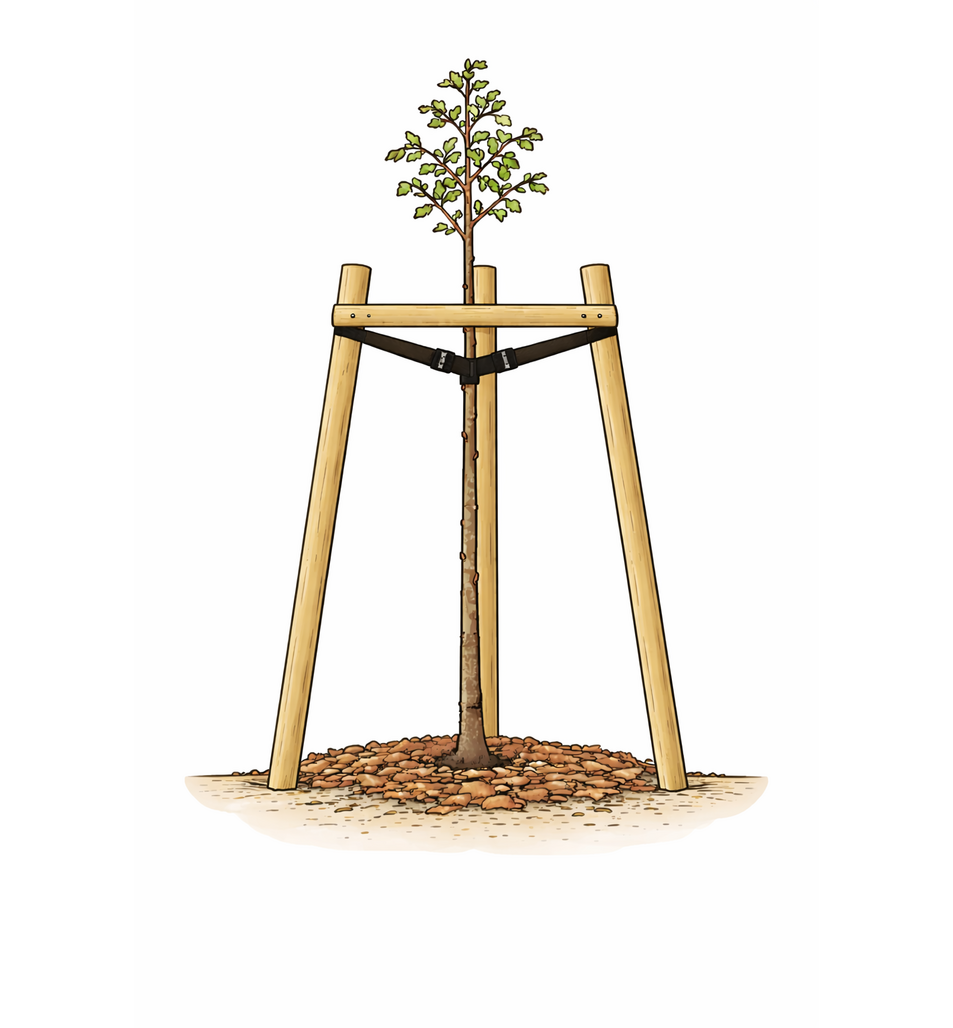 Maintient l’arbre droit après la plantation grâce à un tuteurage souple et sécurisé