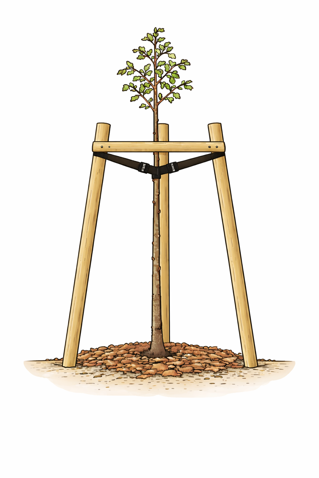 Plantez 3 tuteurs autour de l’arbre :
